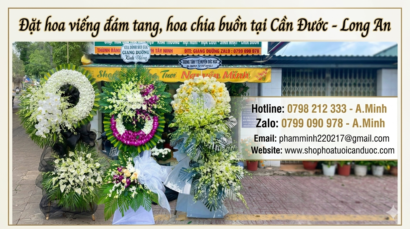 Trong những thời khắc đau buồn, việc gửi một vòng hoa chia buồn là cách thể hiện sự kính trọng và đồng cảm sâu sắc với gia đình người đã khuất. Tại Cần Đước - Long An, dịch vụ đặt hoa chia buồn đang ngày càng được quan tâm bởi sự tiện lợi, nhanh chóng và ý nghĩa nhân văn mà nó mang lại.